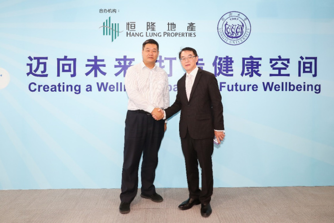 恒隆地产副总经理 – 项目管理(资产管理及优化)梁秉成先生(右)与上海同济大学经济与管理学院副院长施骞教授(左)主讲 “迈向未来,打造健康空间”讲座。