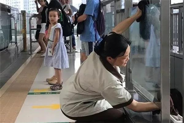 山城重庆,自古以来便有“火炉“之称。上午十点,轻轨站台上的不锈钢栏杆、玻璃已被晒得滚烫,一群清洁女工却依然半蹲着仔细地进行着擦拭,这是中民未来旗下重庆海泰物业的员工们。每天,他们要重复这个动作上千次,确保不放过车站的任何一个角落。