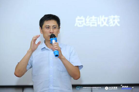 当天开营仪式最后,中国科协企业创新服务中心主任郑浩峻和AA加速器创始人吴玲伟分别进行总结致辞,AA加速器合伙人易冰洁向大家介绍加速营具体内容和流程安排。 郑主任在总结中谈到,今天对于他个人也是一次宝贵的学习机会,他看到了各个企业正在通过区块链技术实实在在地进行创新和发展,也看到了各位专家导师对于区块链领域冷静的思考和判断,在看好区块链发展前景的同时,也深感自己责任重大。郑主任表示,愿意同AA加速器一起,陪伴大家一起走下去,为企业做好服务工作。