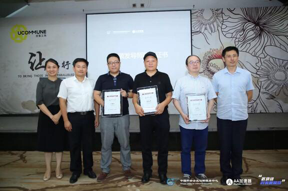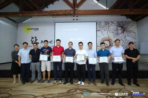 超脑链 Ultrain 联合创始人郭睿进行了题为“区块链对商业模式的改造和技术落地的要求”的分享,郭睿首先表达了区块链技术不仅仅是一次技术的革命,其核心是对整个商业模式的再造和创新,同时,他以比特币为例阐述了区块链的技术特点,并从技术特点出发,以众多公司为实例,向大家分享了区块链技术对于整个商业产生的影响和带来的改变。 在之后进行的导师及项目匹配过程中,入营项目首先进行了项目介绍,优客工场、万国体育、思路名扬、永乐文化、探索传媒、有路、爱蜂科技、HIGO等企业相关负责人分别对项目以及项目的区块链应用和落地需求进行了介绍,现场的专家导师分别对每个项目进行了现场点评,并提出了自己对于项目区块链技术落地应用的看法和建议。 通过项目介绍、导师点评以及现场互动,入营的各个项目共同复盘了当天的收获和对区块链未来发展的展望。 作为在不同领域发展良好并已经取得不俗成就的头部企业,各个项目表示通过与其他项目进行交流并听取了各位导师的意见和建议之后,受益匪浅,无论对于区块链技术层面上的思考,还是未来具体的应用落地,都有了更加明确的方向和更加坚定的信心,同时对未来三个月的加速充满期待。 开营仪式上,中国科协企业创新服务中心主任郑浩峻与AA加速器创始人吴玲伟现场为区块链科技加速营揭牌,导师特聘证书和入营证书的颁发仪式同时进行。