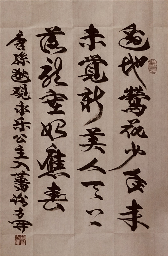 数十年来,钟情于书法艺术,临池不辍,辛勤耕耘,追古求真,博采众长,临历代诸名家墨迹,取众家之长,掦长避短,其书法作品,笔法以唐楷为基调,行楷相间,草行交互,楷带行笔,行含草画。字体端庄大气、浑厚有力,神韵贯通、笔格遒劲,古意盎然。其书法艺术作品,深受广大社会人士及收藏界的喜爱和收藏。