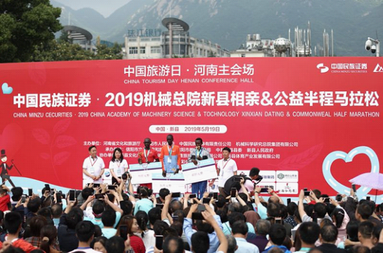 5月19日,正值第9个中国旅游日。在新县—2019年中国旅游日河南分会场,来自国内外6000余名运动员与健身运动爱好者汇聚新县广场,共同见证“中国民族证券•2019机械总院新县相亲&公益半程马拉松”的开跑时刻。
