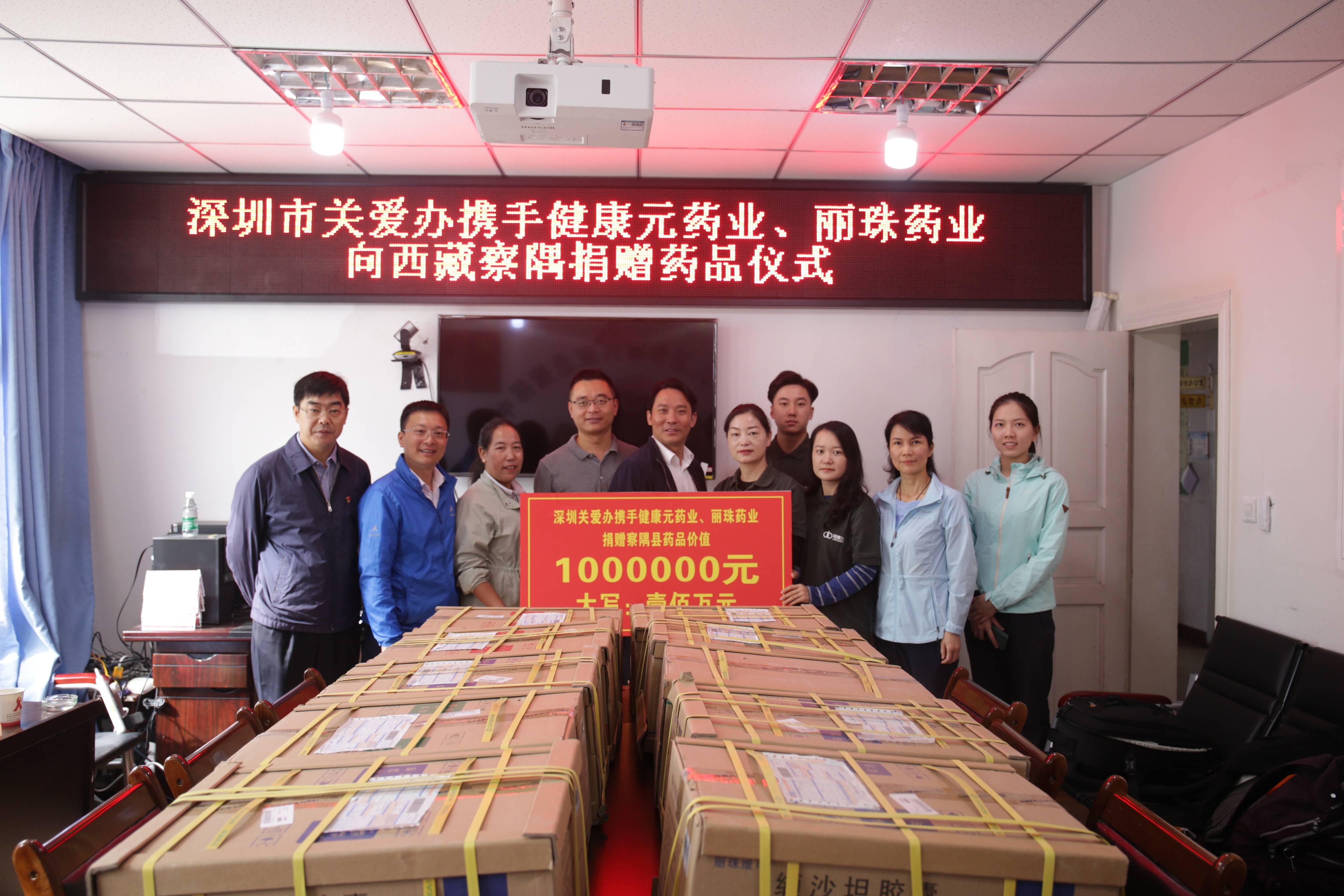 2020年9月7日,深圳市关爱办、健康元药业集团股份有限公司、丽珠医药慢病扶贫进察隅捐赠签约仪式在察隅县举行。察隅县委常务副书记、政府常务副县长刘珍春(深圳第九批援藏工作组组长),察隅县委常委、常务副县长杨力,援藏医疗队队长、察隅县人民医院院长王甘露,副院长边次,察隅县卫健委主任片琼,副主任刘镇平,察隅县宣传部副部长邵东升,深圳市关爱行动组委会办公室副主任华荣,健康元药业及丽珠医药的志愿者代表出席签约仪式。