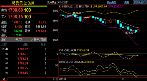 从技术面日线来看,今日黄金实时价格大涨,从亚盘延续上涨至欧盘,目前的价格在1704一线,已经突破MA5均线阻力位,下一个阻力在1714昨日高点附近,也是MA10均线阻力点,盘面上各均线指标任然呈现空头排列,初次反弹至此点位附近正常安排空单。4小时上金价已经从布林带下轨反弹至中轨上方,K线收在MA5\MA10均线上方,4小时布林带上轨在1716附近,目前连续三连阳K线形态成立,短线还有上涨空间。附图指标上MACD快慢线金叉,动能放量上涨,KDJ随机指标金叉,STO上探接近超买区域,综合来看今日行情上方关注1714-1725阻力,下方关注1689-1677支撑,操作上刘铭诚建议高沽低渣建仓。