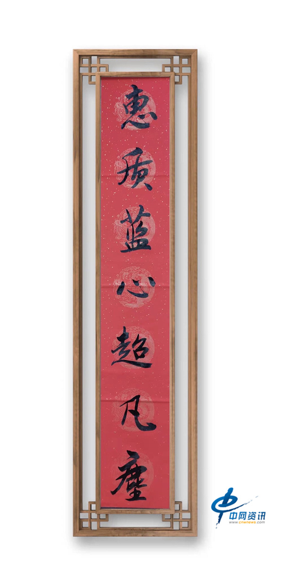 其书法融合了无声之音,无形之象,把佛家善与德融汇到字体中,形成书中有法,无法亦法的境界之中,他书法作品清秀,骨力内敛,刚柔相济,至终贯穿一种艺境之美。