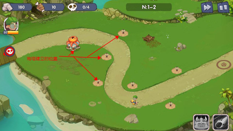 在对应的位置上,点击即可建立防御型炮塔。