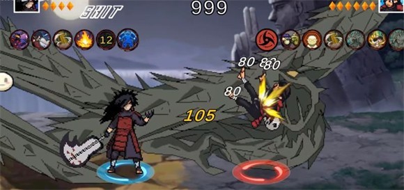 1、采用像素风格的画面设计,每一个火影角色都有独特复古的外观。