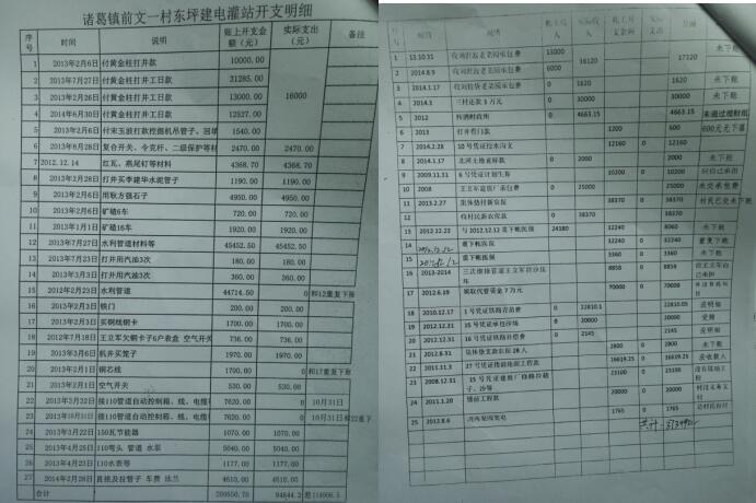 建设村东平电灌站贪污资金11万元左右(见表格)。